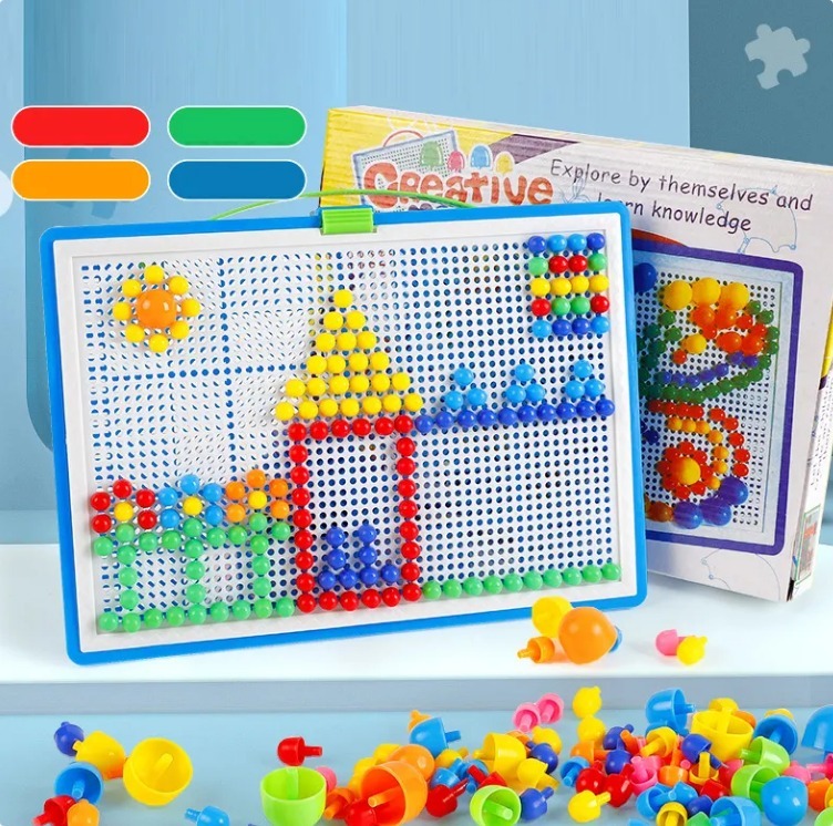 Met deze mozaïek bouwset kunnen kinderen hun verbeeldingskracht en creativiteit de vrije loop laten. Ze kunnen patronen en figuren creëren zoals huizen, dieren en bloemen, waardoor ze spelenderwijs leren en hun ruimtelijk inzicht verder ontwikkelen.